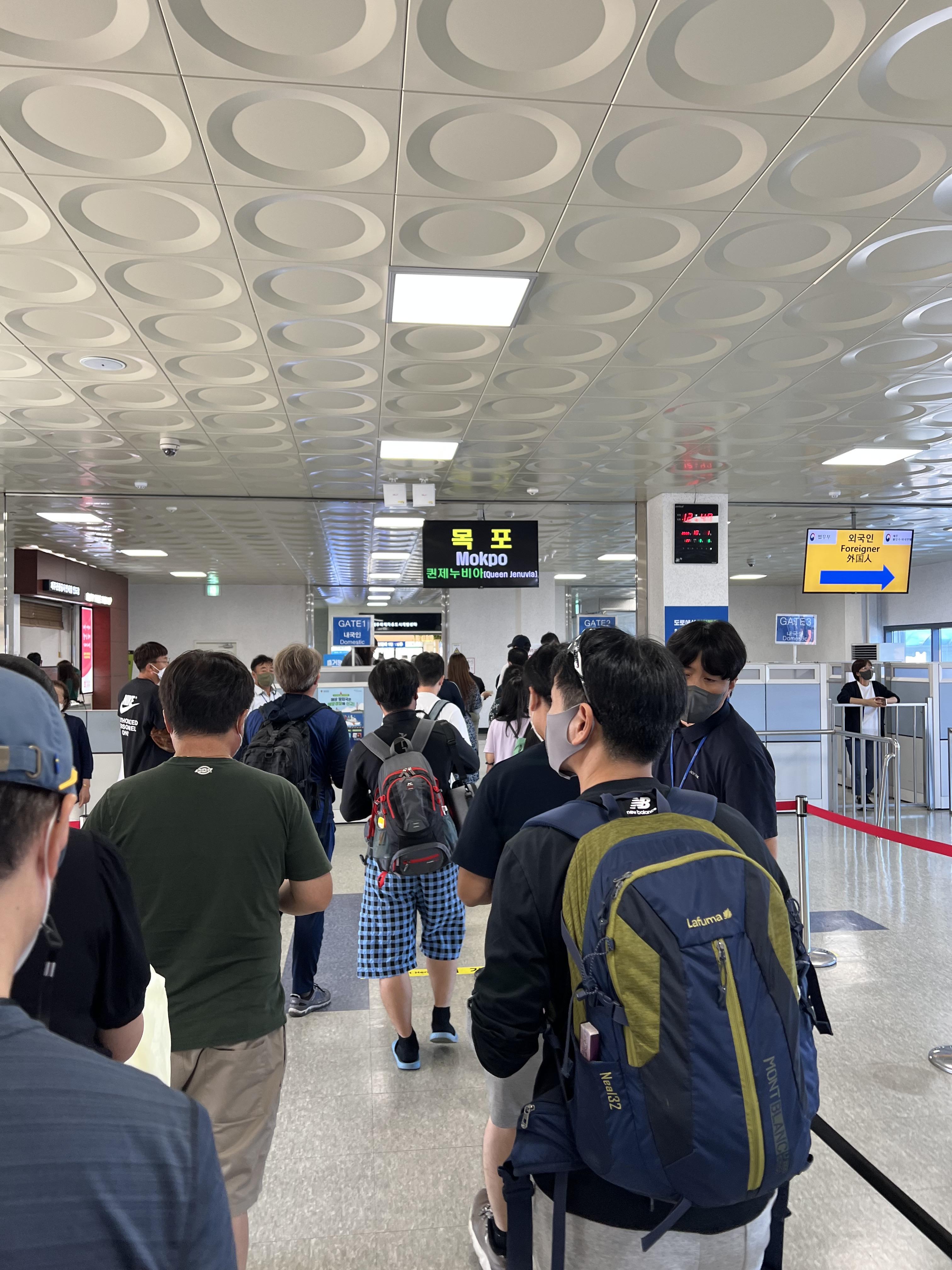 목포항 여객 터미널 바로 옆에 퀸제누비아호가 정박되어 있다. 따라서 운전자는 차량을 선적한 후 안내 표지판을 따라 퀸제누비아호 밖으로 나오면 여객 터미널로 걸어서 이동하면 된다. 그리고 강아지와 함께 여객 터미널에서 탑승시간에 맞춰 티켓과 신분증 확인 후 배에 탑승하면 된다.