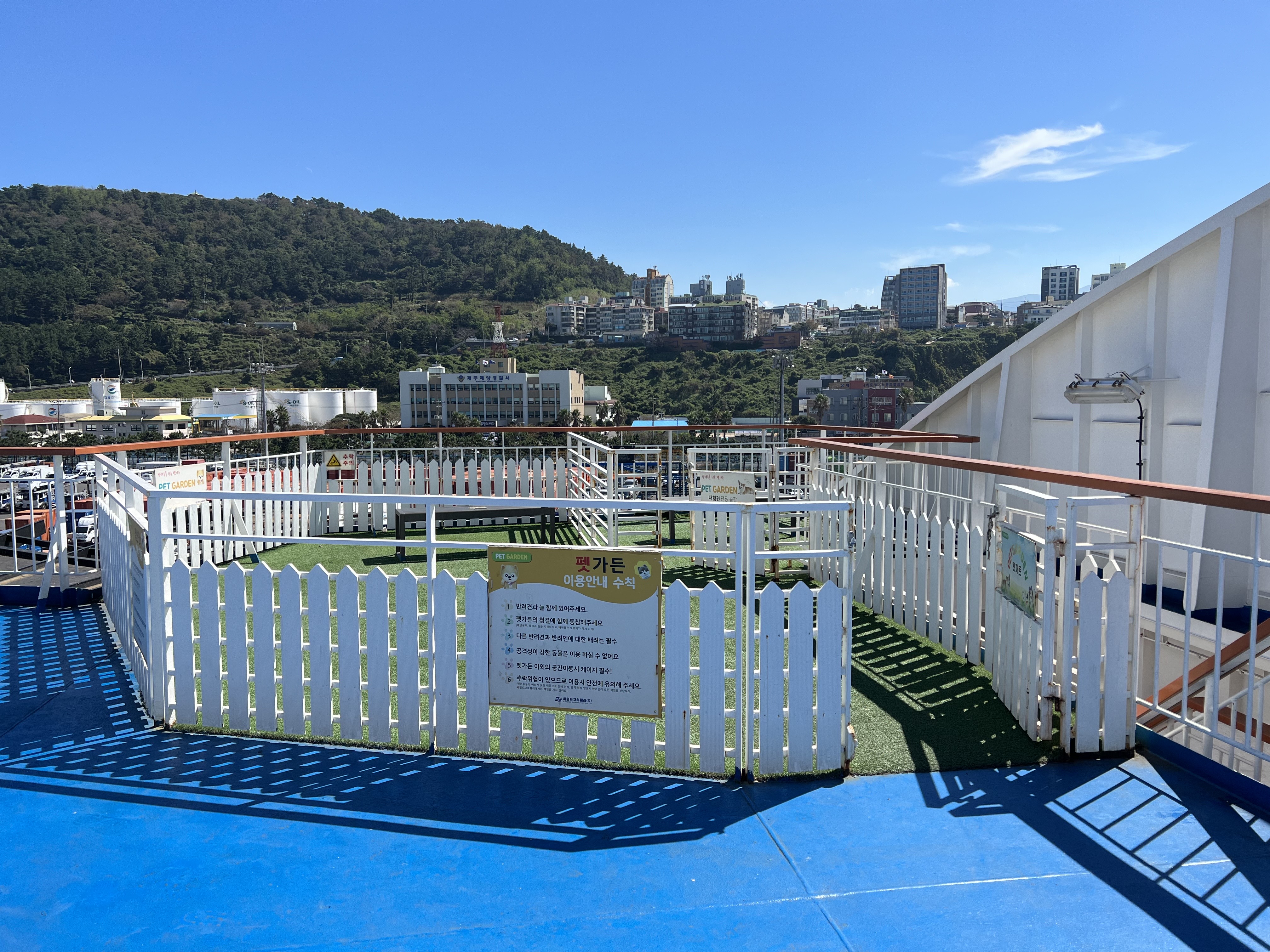 목포 노선은 씨월드고속훼리에서 '퀸제누비아'와 '퀸메리2'가 운항 중이다. 퀸제누비아는 도착까지 약 5시간, 퀸메리2는 약 4시간 30분 정도 소요된다. 두 선박 모두 반려동물 동반 객실을 가지고 있는데, 퀸제누비아는 펫스탠다드와 펫스위트룸 그리고 퀸메리2는 펫플레이룸과 펫스탠다드, 펫스위트룸이 준비되어 있다. 펫플레이룸은 넓은 공간에 강아지와 반려인이 모두 이용하는 공용객실이며, 펫스탠다드는 2인 세트로 판매되는 캐빈 형태의 침대가 여러 개로 이루어진 다인 객실이다. 마지막으로 펫스위트룸은 퀸제누비아의 경우 최대 4인, 퀸메리2는 2인이 사용할 수 있는 개별룸으로 다른 반려인이나 강아지와 마주치지 않고 이용할 수 있다. 나는 퀸제누비아 펫스탠다드룸을 비수기와 성수기 모두 이용해 보았는데, 비수기엔 이용 고객이 적어 한적했지만 성수기엔 모든 캐빈이 가득 찼고 강아지들의 짖는 소리와 바깥 소음으로 인해 신경 쓸게 많았다. 성수기에 일행과 같이 승선한다면, 펫스탠다드룸보다는 펫스위트룸으로 강아지와 편안한 여행을 추천한다.